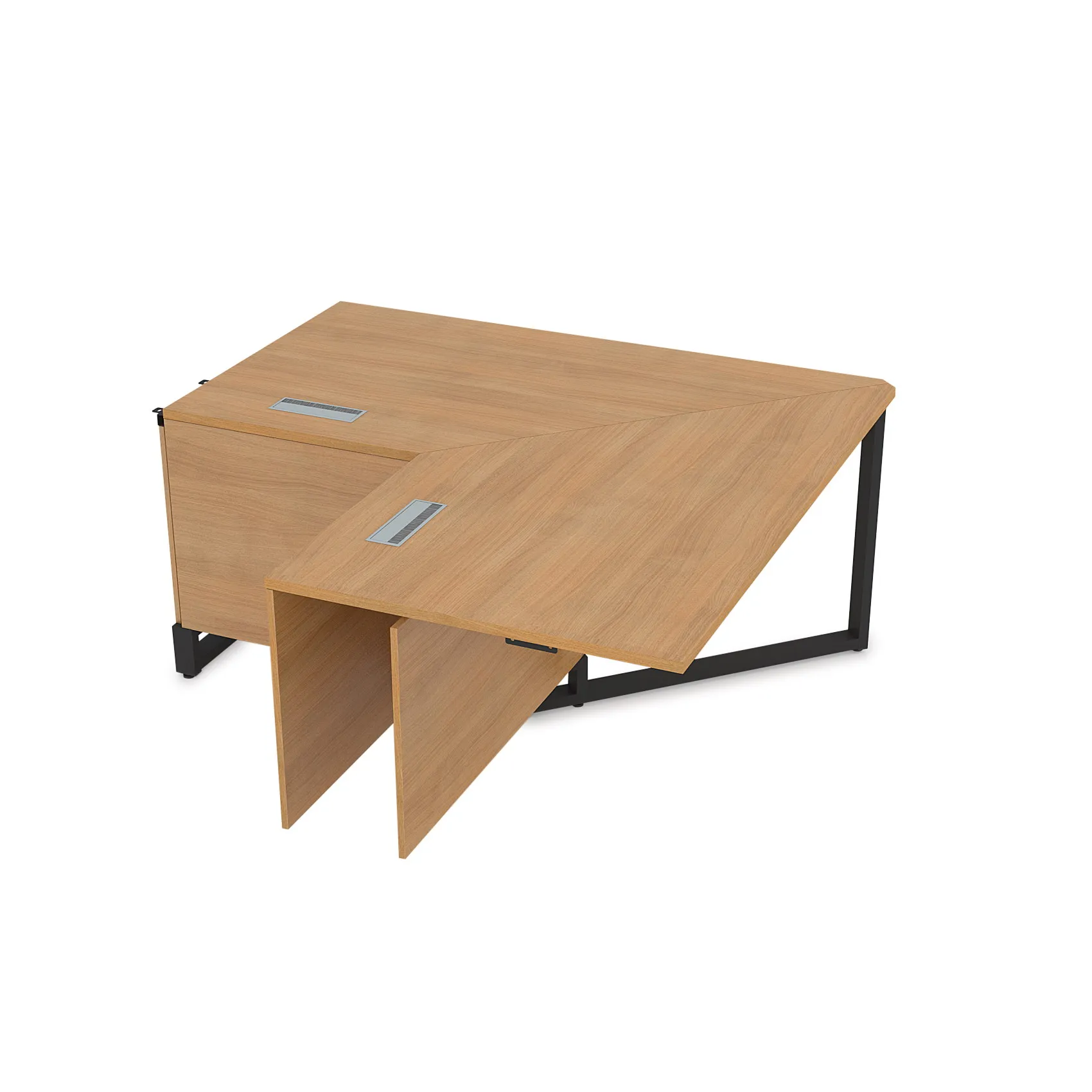 Конструкция стола позволяет разместить в его коробе провода и коммуникативное оборудование. Все столешницы комплектуются лючками для оперативного доступа в короб под провода. Съемная панель короба под провода (для быстрого доступа устанавливается на магниты).